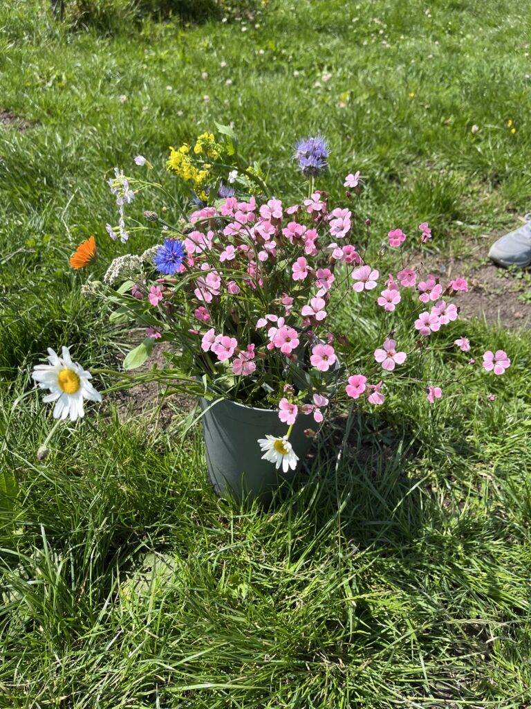 De bloementuin werkt volgens hetzelfde principe als onze groentetuin. Ook hier betaal je aan het begin van het jaar een bedrag, waarvan je wekelijks een boeket kunt komen plukken. Je zult er bloemen vinden als lathyrus, ridderspoor, asters, zonnebloemen, cosmea, koekkruid en vele andere bloemen.